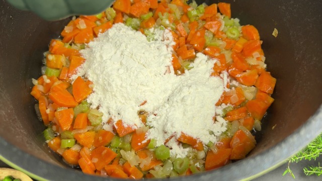 Sprinkle flour over the veggies and stir to coat evenly.